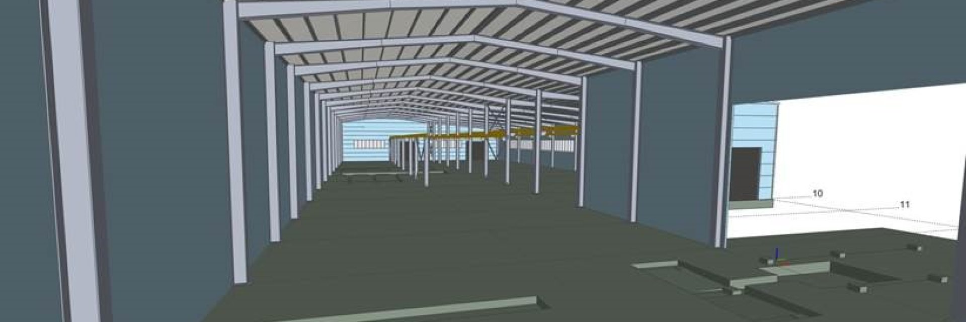 "The hall intended for the production of concrete prefabricates with the foundation of a "carousel", an external warehouse and a concrete mix factory".